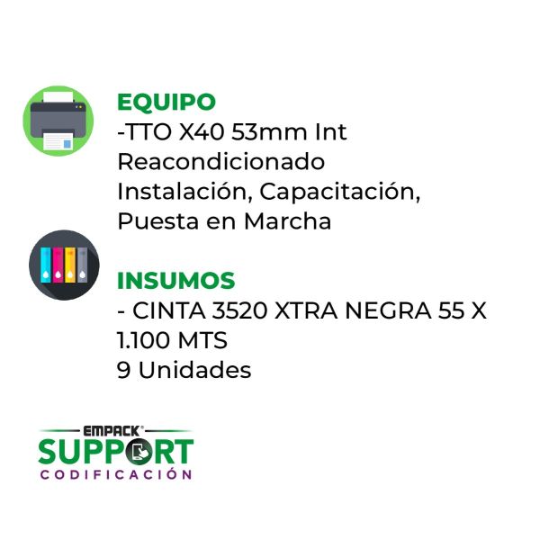 Codificador Thermal Transfer para impresión de envases flexibles en procesos intermitentes (envasadoras verticales). Cabezal de impresión de 53mm ancho con 300 dpi de resulución ideal para imprimir textos, fechas, logotipos, códigos de barras y códigos 2D. Con este equipo se puede alcanzar un área de impresión máximo de 53mm x 75mm