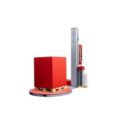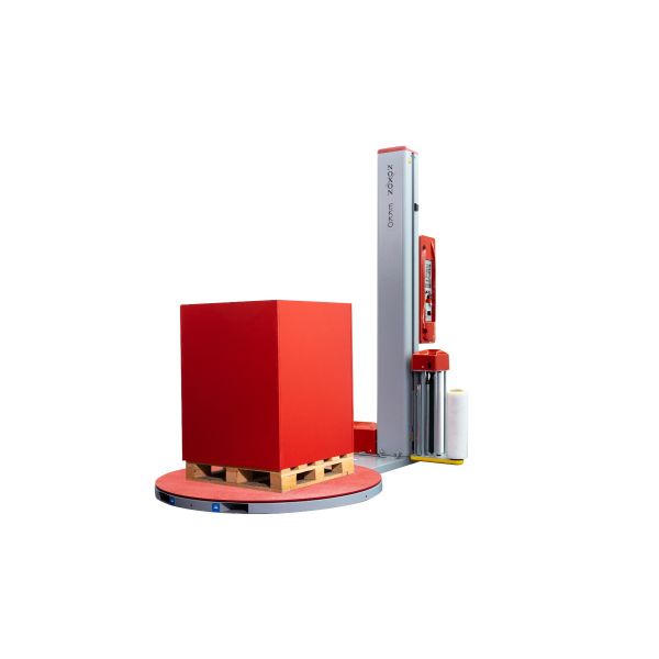 Envolvedora con mesa giratoria Semiautomatica, para la envoltura de pallet, con pre-estirado de film.