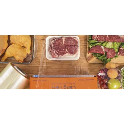 Envasado extensible de carnes y alimentos frescos en film de PVC de contacto alimenticio, que ayuda a la conservación e inocuidad de los productos que se envuelven.